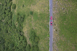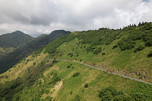 The sense of remoteness and unkemptness gradually increased as we climbed higher into the valley above, traversing in and out along the right-hand slopes. The road was quite narrow in spots, often only a single lane. The pavement would occasionally crumble down into a short one or two car-lengths of gravel, before returning to pavement. The vegetation seemed to crowd in on us - bushes and branches often overhung the the road surface, meaning we had to be careful in these spots to stay right in the center, lest we risk getting the cars scratched.