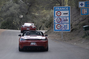 With the cars now nice and shiny, it was time to make the hop into France. We generally wanted to stay in the mountains and enjoy curvy roads at every opportunity, so we nixed the idea of simply driving west on the Autostrada towards Monaco and entering France that way. Instead, we drove west on the Autostrada only as far as the first highway route north that would lead us to a frontier mountain pass, which turned out to be at the coastal town of Ventimiglia. From here, we headed back inland, up the Valle del Roja, on the SS20. This valley's head was against the crest of the mountain ridges that formed the frontier between France and Italy, and there were two good crossings.