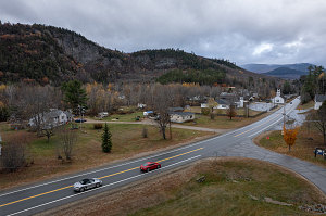 Now in New Hampshire, our objective was to head generally towards North Conway. We were transitioning into the White Mountains here, and the highways and roads are subject to the barriers that these higher peaks present. We turned back northeast for a few miles, soon turning onto NH-110, a route that winds across the northern White Mountains to the cirty of Berlin. Dampness and occasional rain continued.