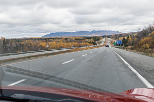 After the Riviere Delisle excursion, we merged onto the Quebec Autoroute network. It was time for us to make some faster progress towards our destination. Autoroute-20 to Autoroute-30 to Autoroute-10, and then on the 10 east for an hour or so. That brought us across the flats of Quebec's Monteregie region to the foothills of the Appalachians in Quebec's Eastern Townships area. As we headed east, the clear skies gave way to mostly overcast, and the higher hilltops in the area were lost in cloud.