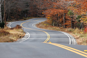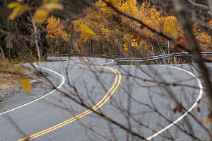 The next identified segment of our drive was highway NH-118, which branches off from the 112 not far west from Lincoln.   This highway is also known as The Sawyer Highway, and it traverses along the wild and untouched forest along the southern flanks of Mount Moosilauke.   I'd been on this route a few times before while driving to various mountain trailheads, so I knew this stretch was twisty.  What I didn't realize, but soon did as we turned onto it, was that it has recently been repaved.  Perfectly repaved.  And only months old, given the darkness of the pavement.