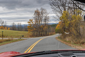 After taking our Appalachian Gap hero shots, we continued west down VT-17.   The Western slope is as good as the eastern slope, with a different yet very interesting set of super tight twists and turns.  Unfortunately, we couldn't really take full advantage of these curves.  The combination of cool temperatures, wet road, and the simple fact that we were on descent rather than ascent - all of these were likely going to make grip a real concern.   I could sense instinctively that even a little bit of spirited driving risked a very unpleasant plow/understeer sort of situation.  And there was no way I was going to ruin an otherwise amazing driving day with an incident like that.