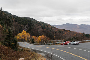 NH-112 is also known as the Kancamagus Highway, so named for the 2,855-foot high Kancamagus Pass over which the highway runs.   "The Kanc", as it is known, is not the twistiest of routes, but it is scenic and offers many good lookouts.   I planned to do a large chunk of my car-capture photography along this first stretch of our drive.