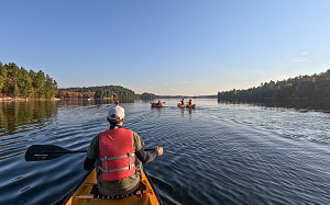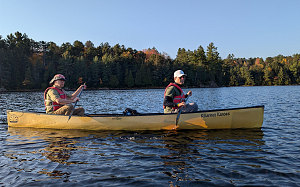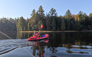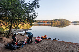 The Hatkos split off and headed to the nearby lakeshore to start pumping up their inflatable packrafts. The rest of us: myself, Nick, Jenn and Rowan - headed over to the nearby outfitters - Killarney Kanoes - in order to initiate our canoe rentals.