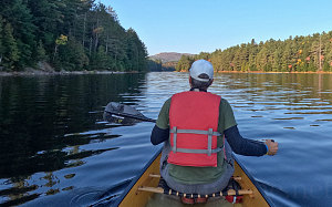 We were up early the next morning, pre-sunrise, to get ready for the day. Our objective: a climb of Silver Peak, the park's highest mountain. To achieve our goal as a day-outing, we needed to first travel by water from a car-accessible access point to a trailhead on the western shore of Bell Lake, located just east of where the mountainous ridges started. From that trailhead, we would walk a further six kilometres and up about a thousand vertical feet to reach the summit. There are other ways to reach Silver Peak, but all of them are much longer and would require an extremely long day hike, if not multiple days.