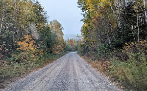 To get to the Bell Lake access point, one must drive for about 9 kilometres along the Bell Lake road. In our research leading up to our trip, we had read reports of this road as being "VERY rough" and that a high-clearance vehicle was recommended. This sort of thing. There's no street view of this side road nor are there really any photos from along it, so there was no way to directly confirm or dismiss this description. However, I tend to find that the most dramatic route descriptions online tend (not always, but tend) to be from people who are for whatever reason.... coming from a place of inexperience or irrational fear. I suspected in the back of my mind that this road was not going to be that bad. After all, the outfitter at the end of the road was obviously using it to transport huge racks of canoes on trailers back and forth on a daily basis. That alone implied that it wasn't a sketchy high-clearance road.