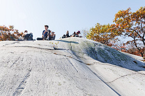 We got out our hiking snacks and lounged about on the warm, smooth rock, trying to dry ourselves out a bit from the sweaty climb.