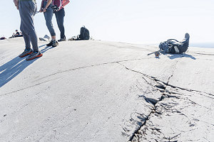 We took a good long break here - essentially our lunch break. Lying about on the warm, smooth rock, a light warm breeze would easily lull you into a nap, if you let it. I think a few of us may have actually succumbed. Other hiker traffic was blessedly light today, and for our time there, we had the peak to ourselves.