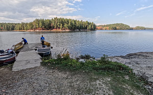 After about an hour of paddling (slightly slower than on our way in) we neared the Killarney Kanoes outfitter dock. The Hatkos went off to land and deflate their packrafts, while we pulled up to the dock and disembarked. The outfitters were ready and waiting for us, immediately taking control of our canoes and rental gear. On the ball, these guys were.