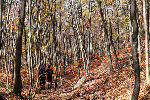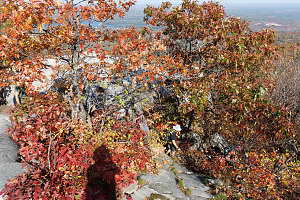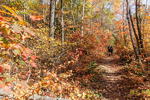 Soon we were back down in the trees, descending the rocky trail. If anything, the forest seemed even more beautiful on the way down, bathed in a gentle afternoon sunlight that really made the fall colors pop. Such a pleasant day today!