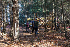 It took us a little over 30 minutes to descend the thousand feet (300m) back down to the junction with the La Cloche-Silhouette Trail. We did not make any rookie mistakes and took a sharp right here, heading east back towards the dock at the western end of Bell Lake. The walk was - as on the way in - easy and mostly flat, and we covered ground at a good pace, arriving back at the canoe racks above the dock at about 2:35pm. It was looking like we'd arrive back at the access point and the cars before 4pm.