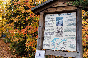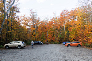 With permits on-dash, we headed out from our campground, turning left and heading northeast along highway 637. It is only about a six kilometre drive from the campground to The Crack parking lot, for which the entrance is on the north side of the road. As expected, there were only about 6 or 7 other vehicles in the parking lot on this early Monday Morning (I'm guessing the lot can hold maybe forty or fifty cars max).