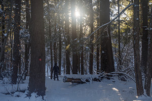 The forest was deathly still and silient on this coldest of mornings, with the squeak and crunch of our snowshoes being the only sound. The sun would occasionally shine through the trees, and it had a friendly strength to it despite the cold and the time of year.