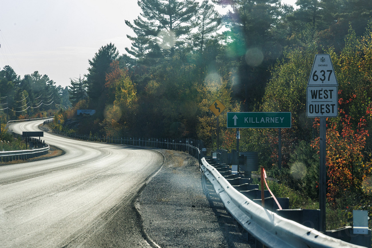 A long and lonely highway - provincial highway 637 - leads west to a dead-end at the town of Killarney on the shores of Lake Huron.