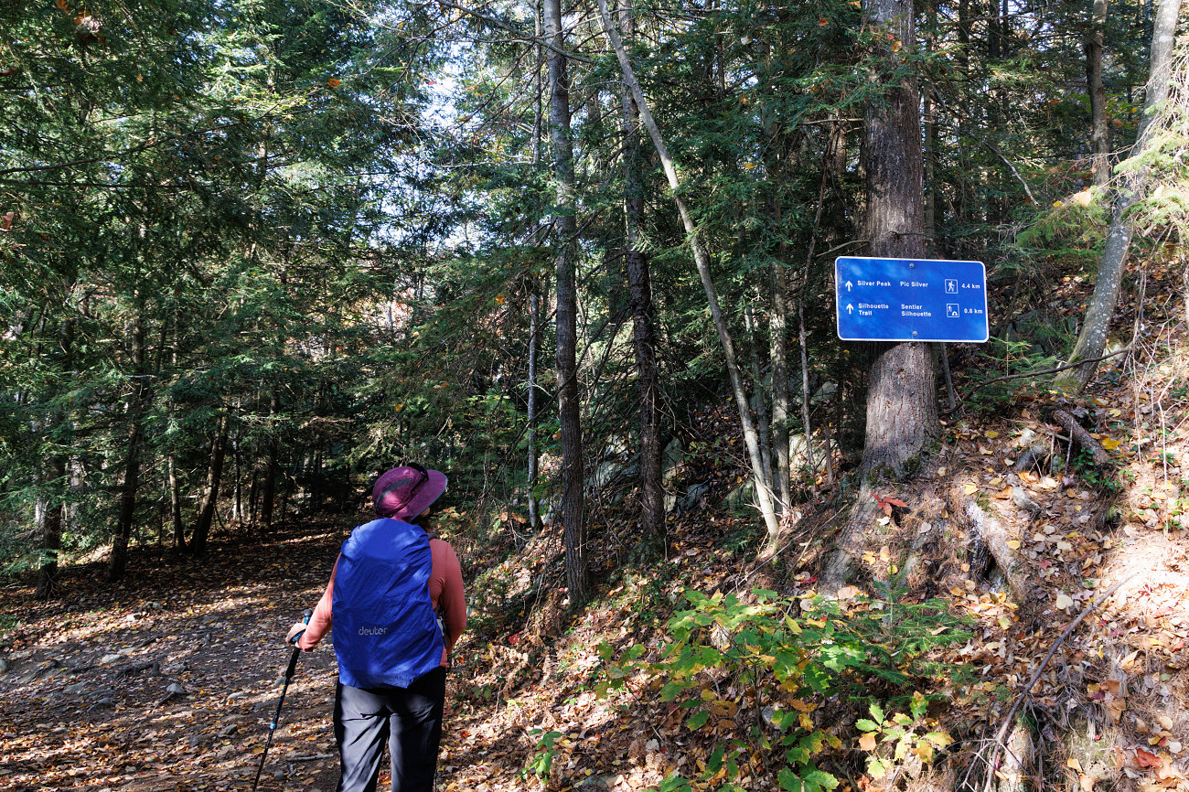 The trail sign at the side trail leading down to Clearsilver Lake. We simply keep walking west.
