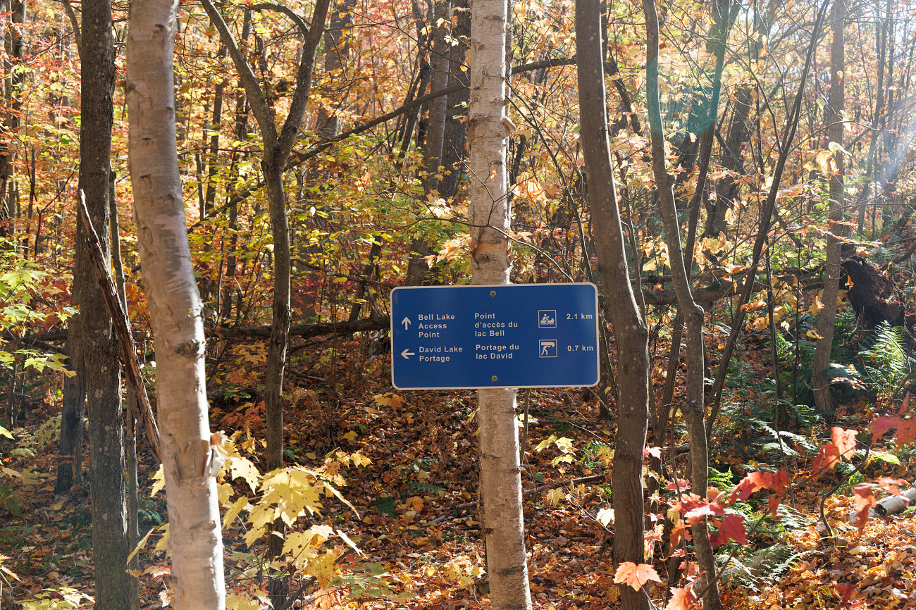 The next sign along the access trail is at the junction with a portage trail to nearby David Lake.