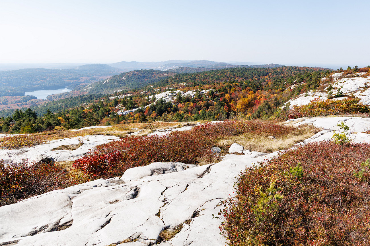 View down Blue Ridge Looking southwest down the spine of the South La Cloche Range (also seemingly known as Blue Ridge). Far in the distance are the waters of Lake Huron, today obscured by haze.