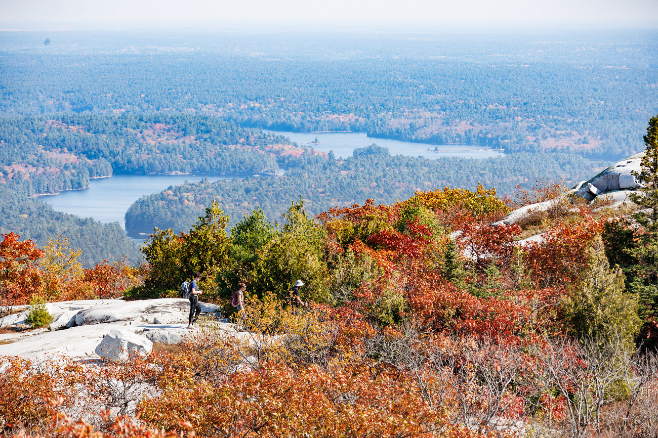 Our group hikes over to the East Peak, with the waters of Bell Lake - which we canoed to get to the trail - in the background.