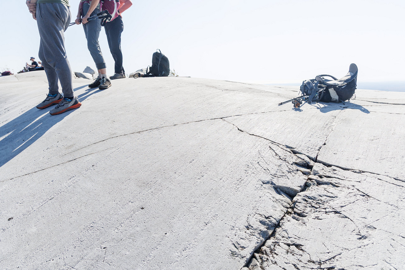 A nice example of crescentic-shaped chatter marks in the scoured quartzite bedrock atop Silver Peak.