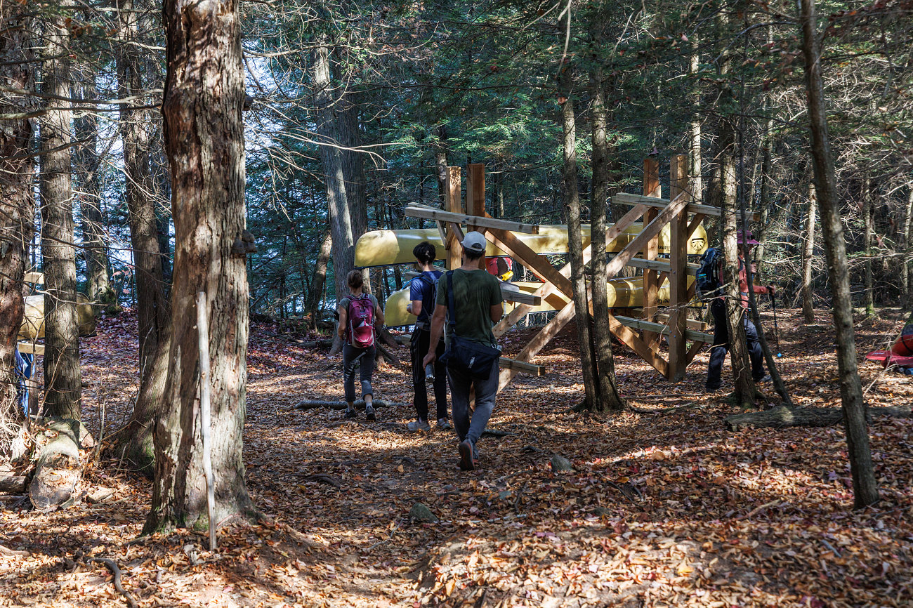 Back at the Watercraft Arriving back at the canoe racks adjacent to the dock at the western end of Bell Lake. It is now time for our one-hour paddle back to the Bell Lake access point.