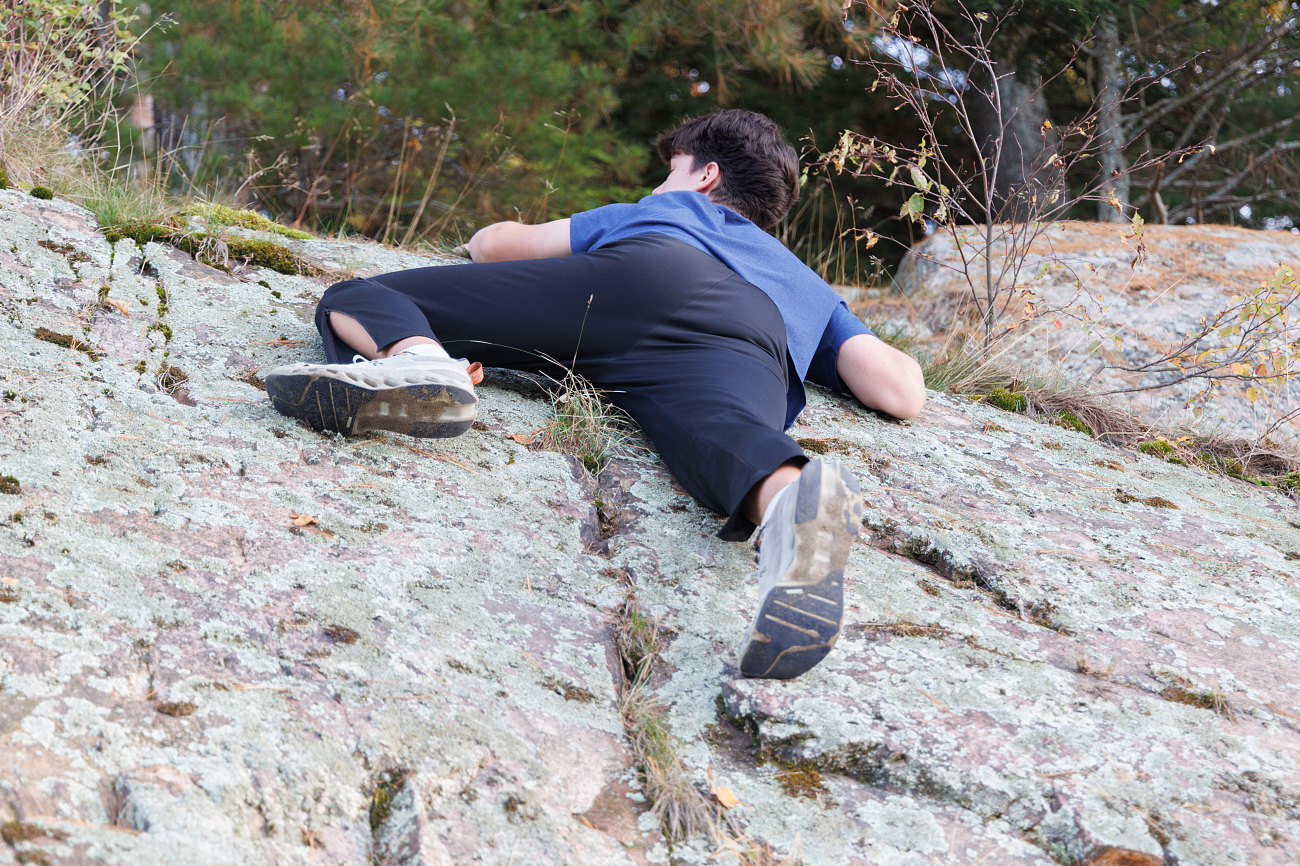 Rowan does a little impromptu climbing on the shoreline near our campsite.