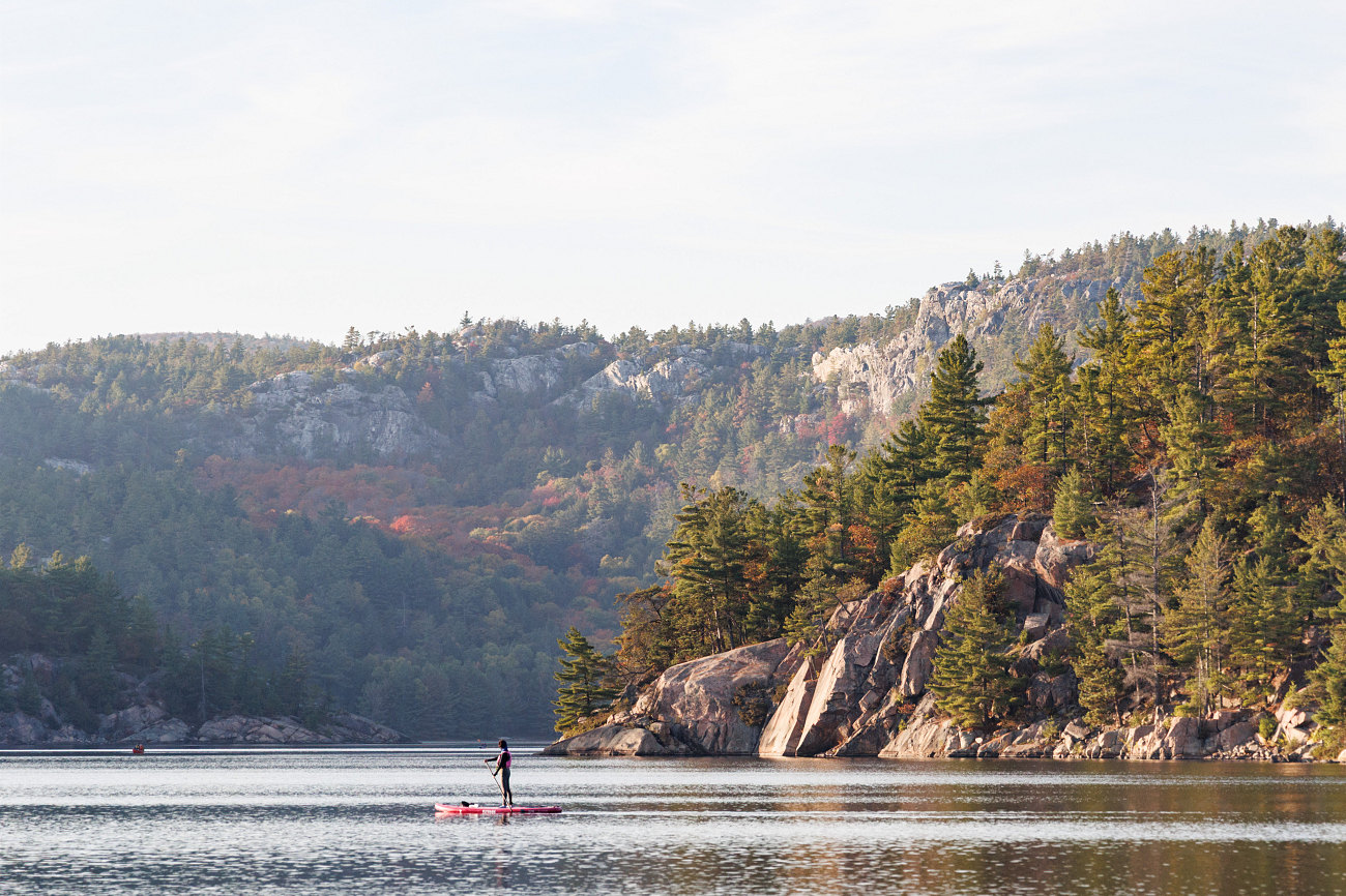 George Lake Cliffs Killarney Ridge - a lower arm of the La Cloche Range - rises steeply on the far shore of George Lake. As seen from near our George Lake campground campsite.