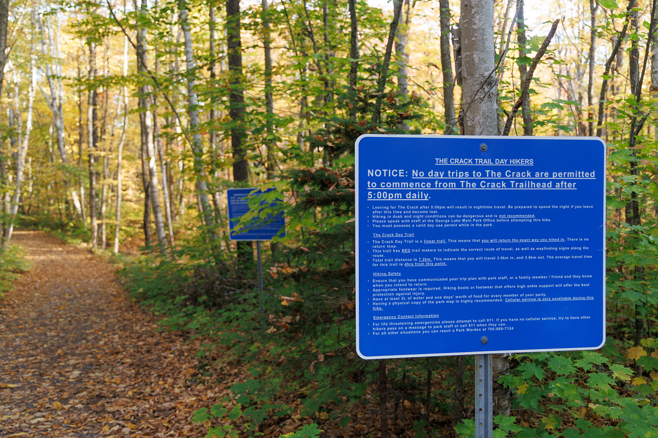 And the obligatory stern warning sign (about not doing dumb things) at The Crack trailhead.