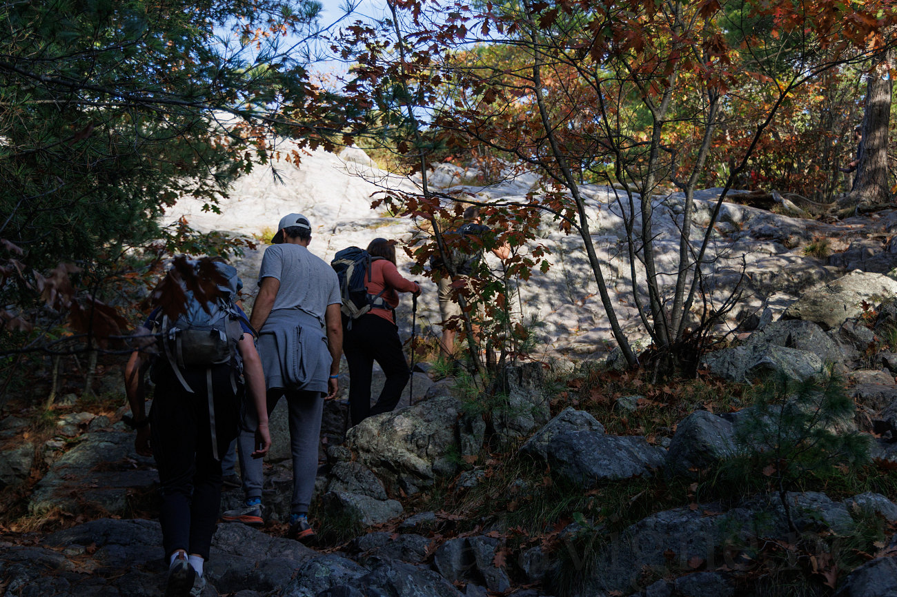 At about the 770-foot (235-metre) level, we start to encounter some open patches of white quartzite bedrock.