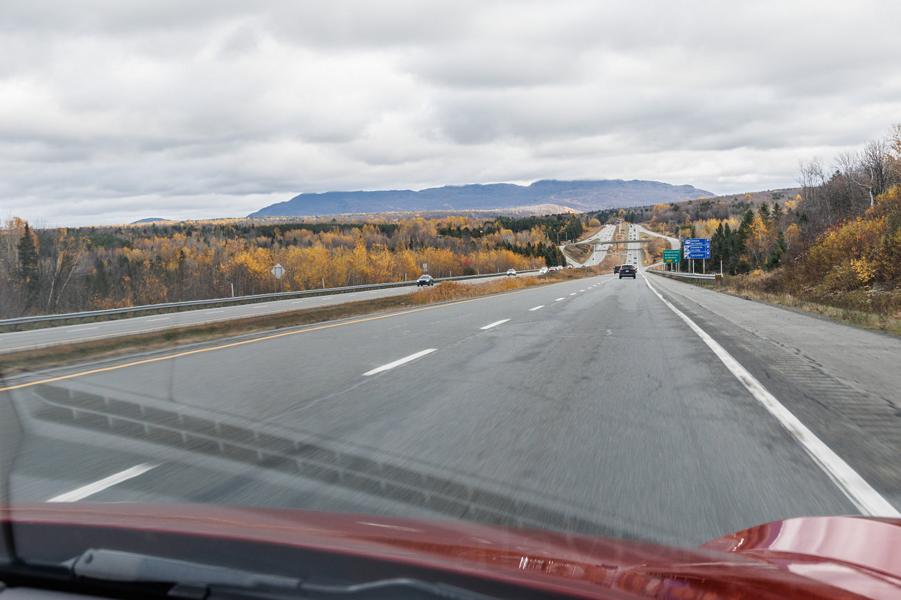 A little 'spressway Making a bit of distance on the A-10 expressway in the Eastern Townships of the province of Quebec. The peaks of Mount Orford are cut off by a low cloud deck in the distance.