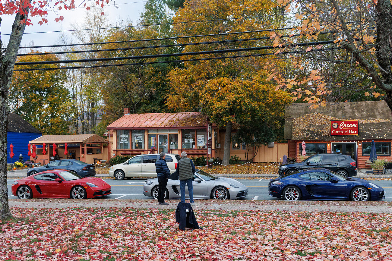 Gathering in front of Peach's Restaurant in North Conway, NH. It's almost time to start our ride!