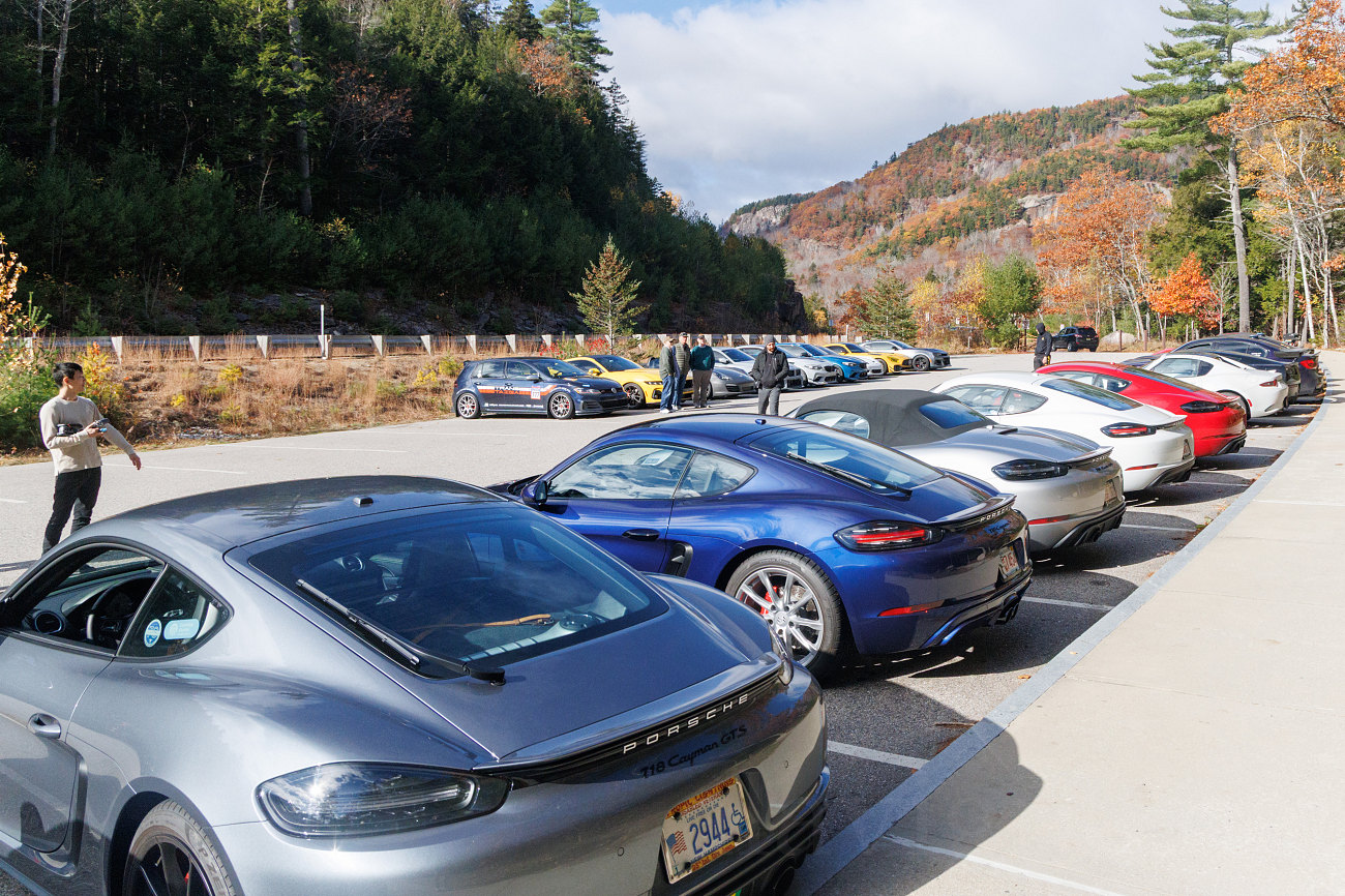 At a pullout partway along the Kancamagus highway, we encounter a much larger group of auto enthusiasts from New York City.
