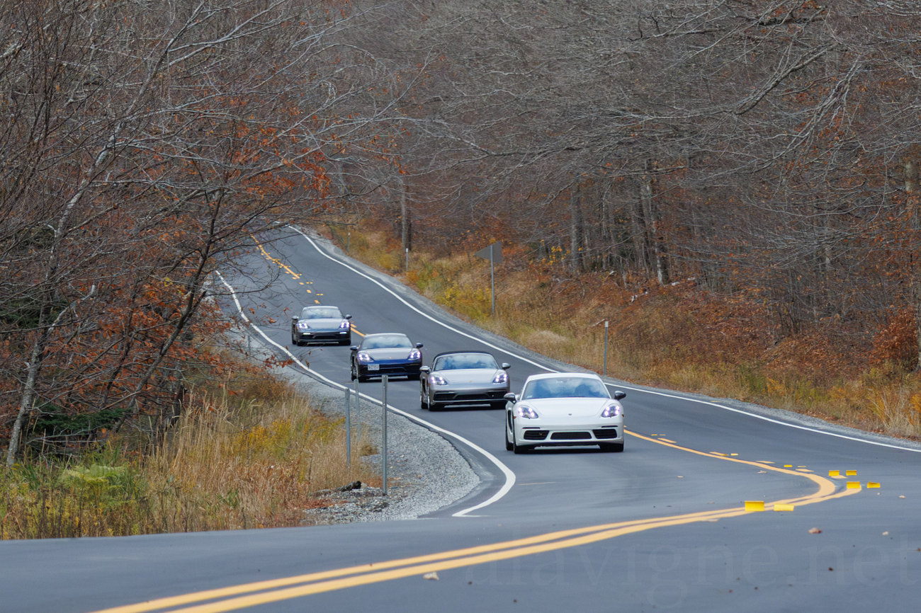 The 718 procession on smooth fresh asphalt on the Sawyer Highway west of Lincoln, NH.