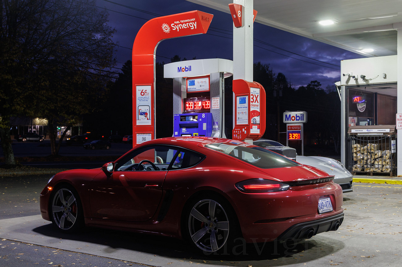Stopping for a top-up at a Saranac Lake Mobil station before heading back towards Canada.