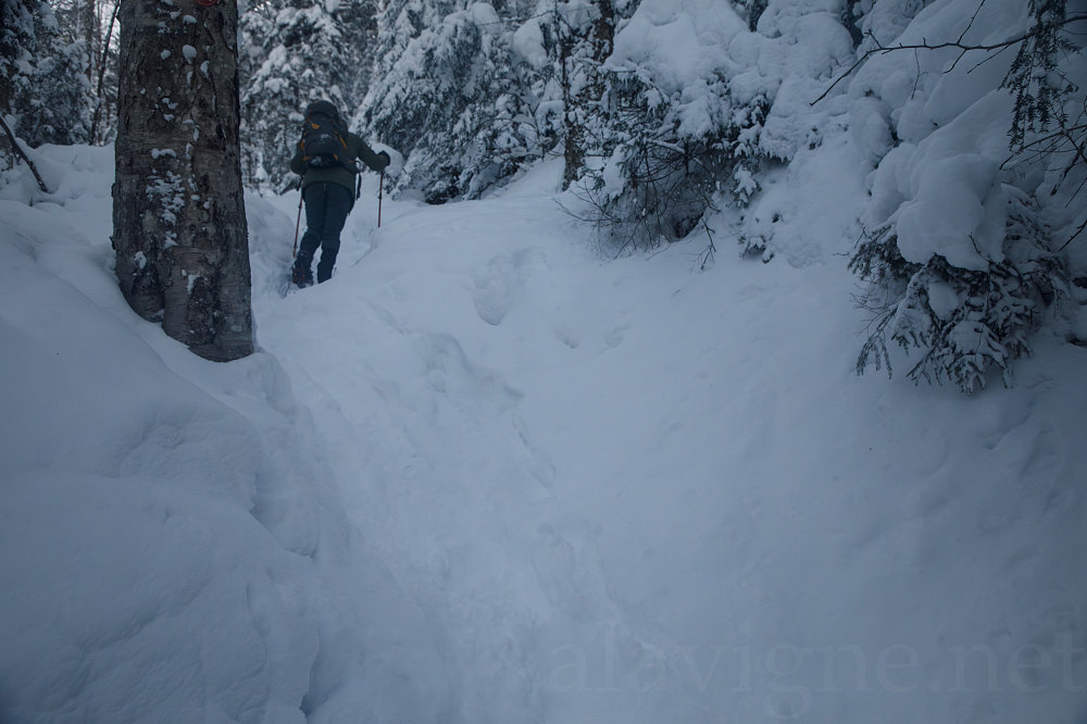 The snow gets significantly deeper and the trail significantly steeper as we begin the main ascent up to Ampersand's ridgeline.
