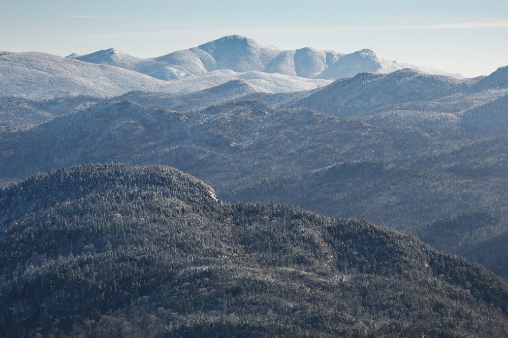 The MacIntyre Range - containing New York's second-highest peak - Algonquin - look bumpy and ravine-riven from the western viewpoint of Ampersand's summit.