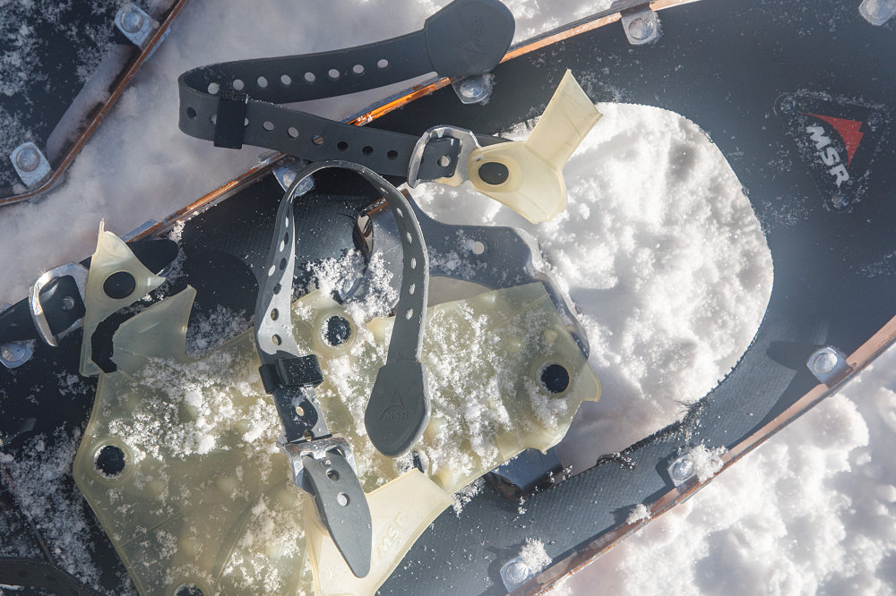 A closeup of the completely disintegrated cradle of my left MSR Lightning Ascent Snowshoe binding. I've never seen a cradle fail quite like this before.