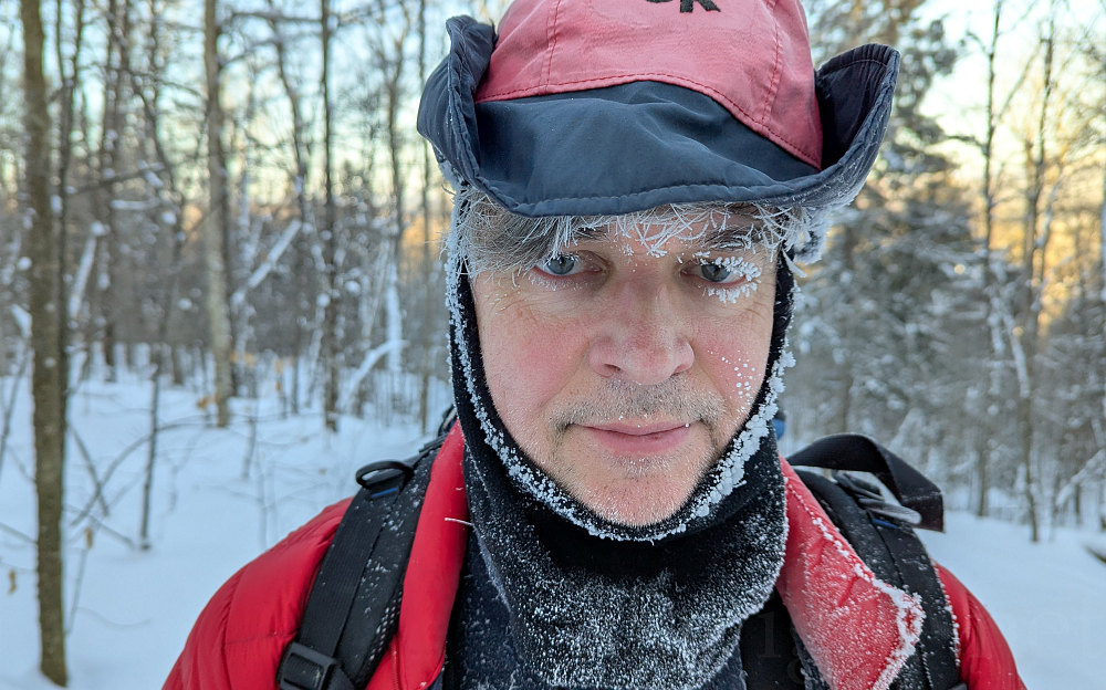 Andrew exhibits the effects of breathing heavily in -26C (-15F).