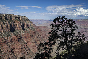 Although this initial bit of trail was very scenic, it mostly offered views across the deep side-canyon of Pipe Creek, over to the walls below Mather Point. Views into the main part of the Grand Canyon were limited. This changed suddenly when the South Kaibab Trail reached the end of its traverse under Yaki Point, and arrived at the steep crest of the ridge - Cedar Ridge - coming down off of the point.