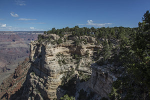 The dictates of time and the large crowds of people soon pushed us on from Ooh-aah point. We continued down, following an immensely scenic segment of South Kaibab trail that runs right on the crest of Cedar Ridge. In many locations along this stretch, the landscape drops away on both sides of the trail, creating a very open and expansive feel. Perhaps the only drawback to this section of trail were the eroded-out hollows between periodic cross-logs - they made hiking down the trail a bit tedious.